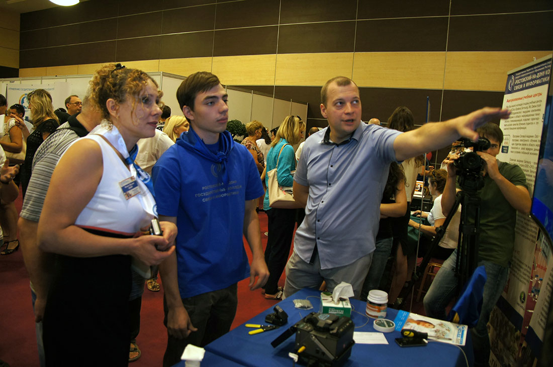 На мероприятии преподаватели и студенты РКСИ провели мастер-класс по монтажу волоконно-оптических линий связи. На стенде колледжа в этот день все желающие смогли попробовать выполнить монтаж оптических волокон с использованием оборудования ведущего мирового производителя - японской компании Fujikura.