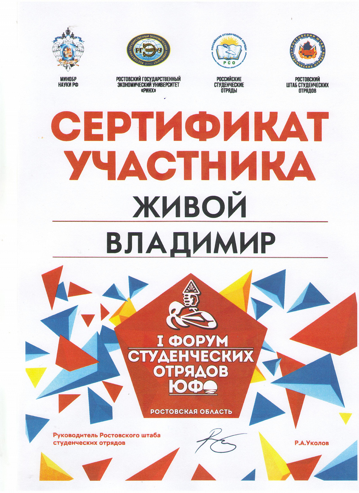 Студент группы ИБ-32 Владимир Живой принял участие в I-м форуме студенческих отрядов ЮФУ Ростовской области.