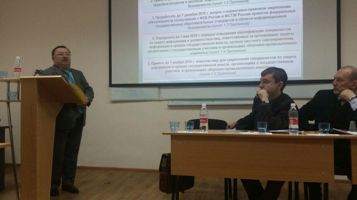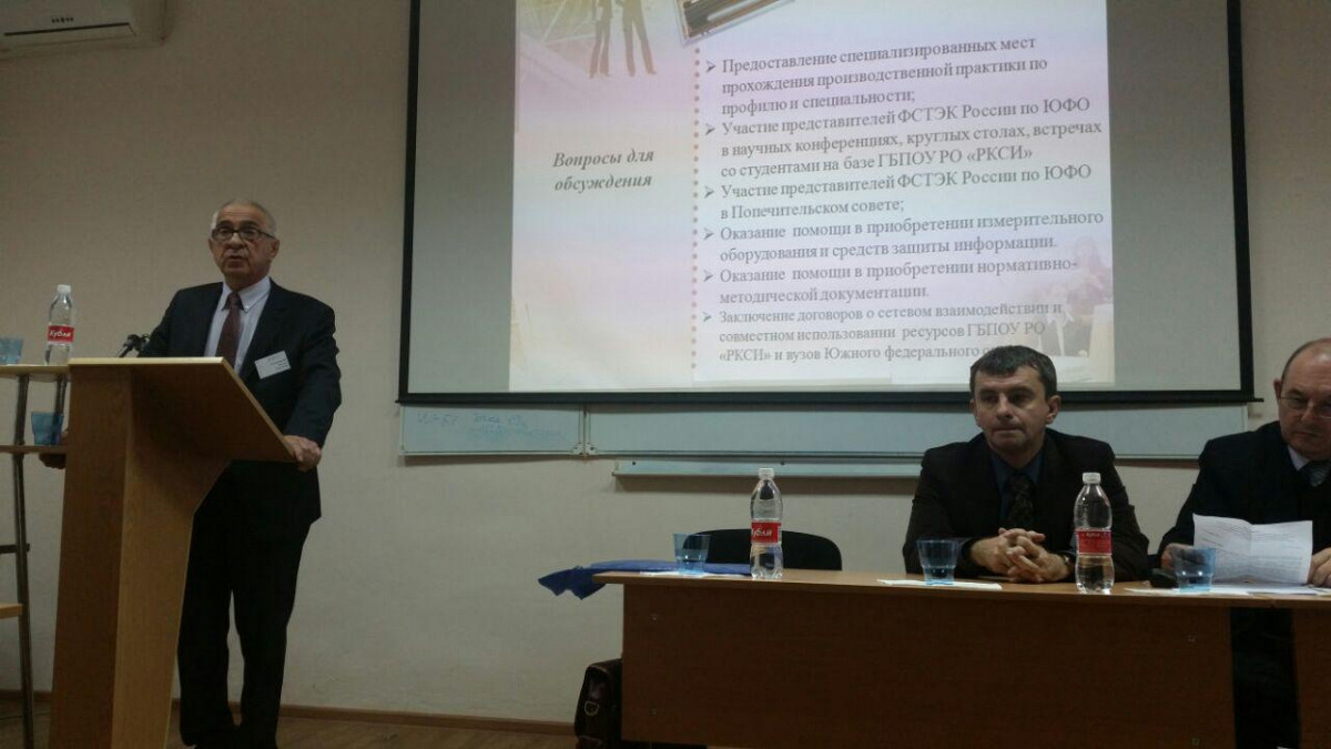 В ходе своего выступления на заседании директор РКСИ Михаил Борисович Стрюков рассказал об опыте реализации в нашем колледже специальности «Информационная безопасность телекоммуникационных систем» в системе среднего профессионального образования.