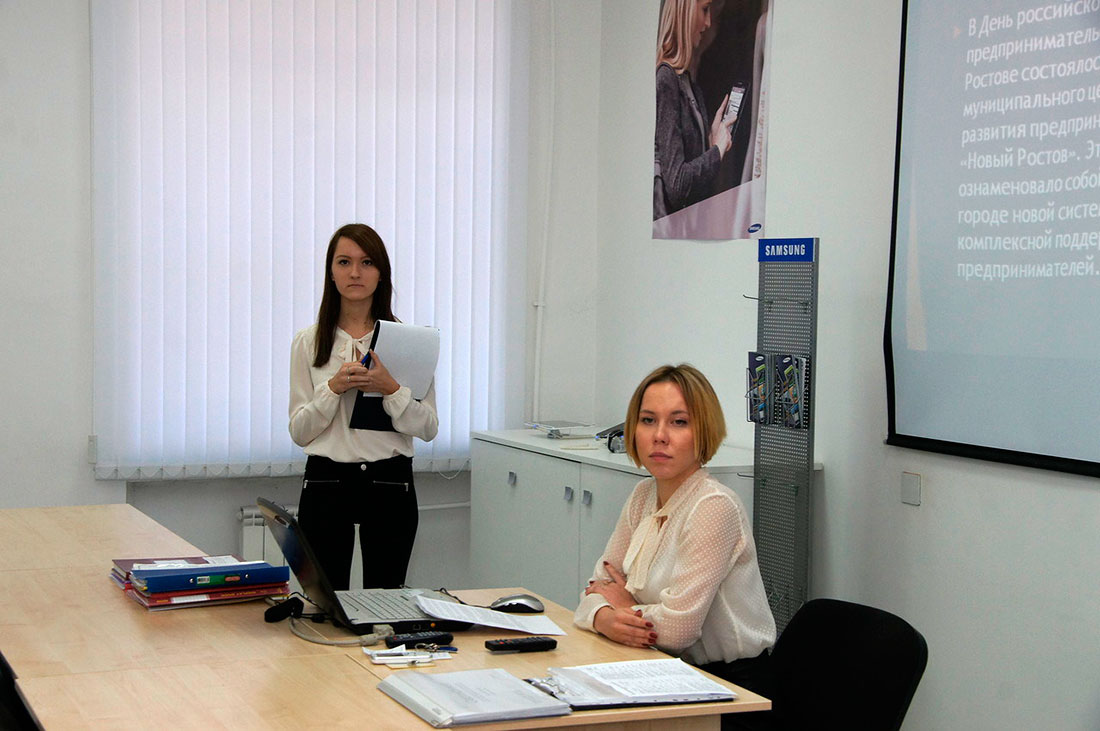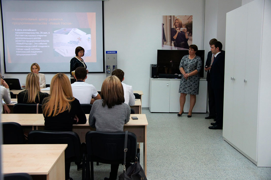 Разобраться в уровнях программ помощи бизнеса, их специфике и особенностях студентам РКСИ в ходе урока помогли преподаватели колледжа во главе с Шемякиной Натальей Юрьевной, заведующей кафедрой ЭУ и ПС. Налоговые каникулы, субсидии, перепись объектов малого и среднего бизнеса, программы для молодежи, возможности коворкинга «Новый Ростов» – вот неполный перечень тем, затронутых в ходе занятия.