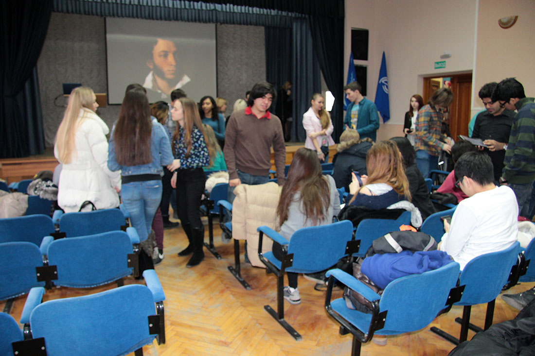 Мероприятие началось с рассказа о А.С. Пушкине бразильского студента. Затем студентка из Мексики прочла стихотворение С.А. Есенина на английском языке. Многие иностранные студенты рассказали о великих писателях и поэтах своей родины. Студентка группы ПИ-21 Настя Герасимова спела две песни – джаз на английском языке и лирическую – на русском. В исполнении студента группы МТ-22 Борислава Свинтуховского звучали стихи любимого поэта А.С. Пушкина на английском языке, а Владислав Березовский (МТ-22) представил собравшимся свое собственное стихотворение. Участники вечера решили проводить подобные мероприятия в дальнейшем.