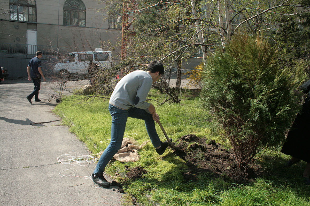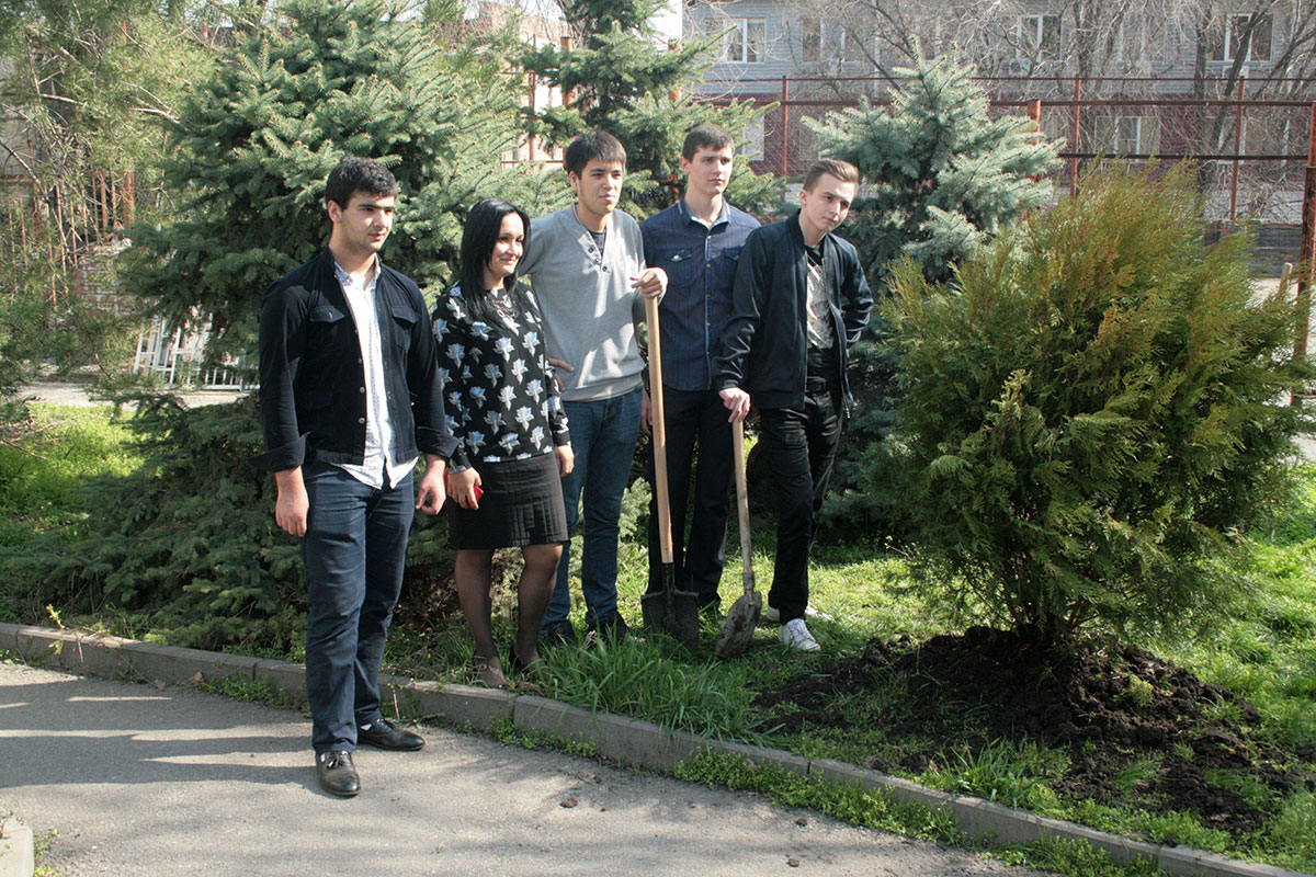 В День древонасаждений сотрудники, преподаватели и студенты колледжа приняли участие в благоустройстве двора учебного корпуса и общежитий РКСИ. Силами коллектива РКСИ было высажено 42 саженца деревьев – туй, лип, клёнов и рябин.