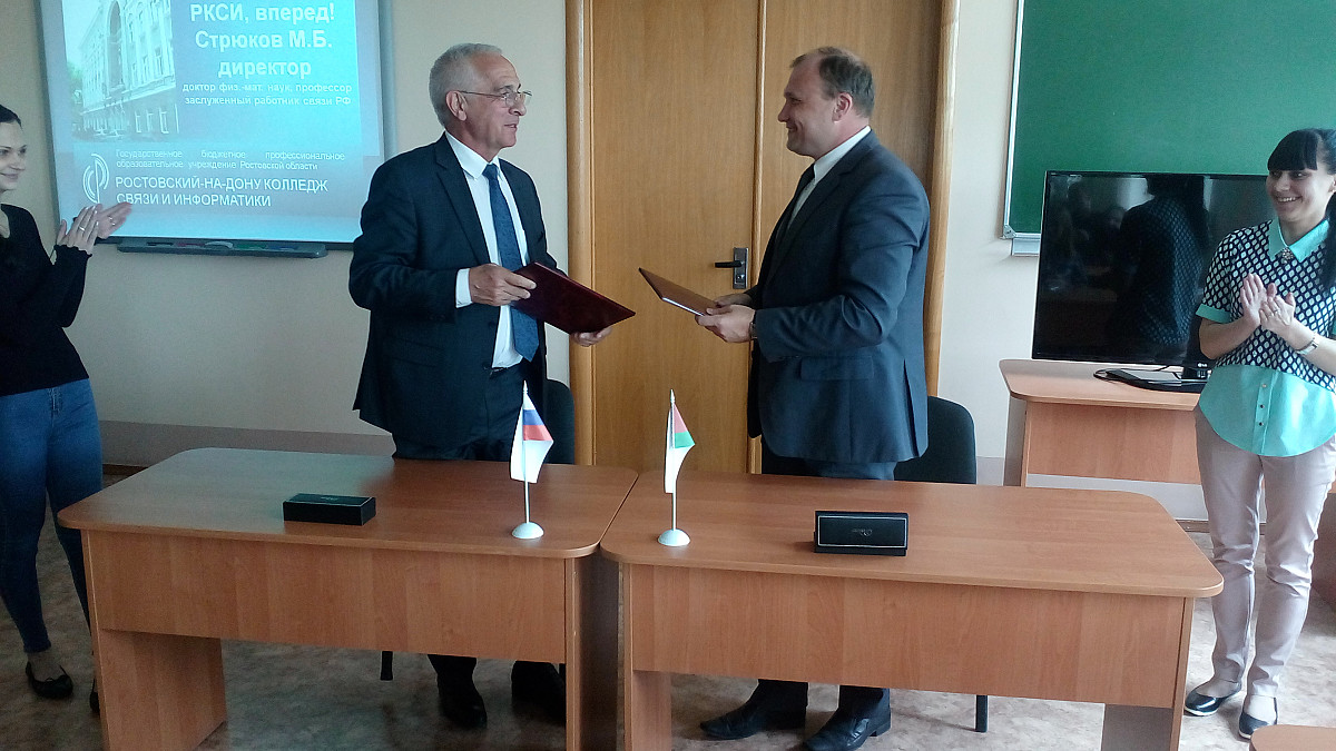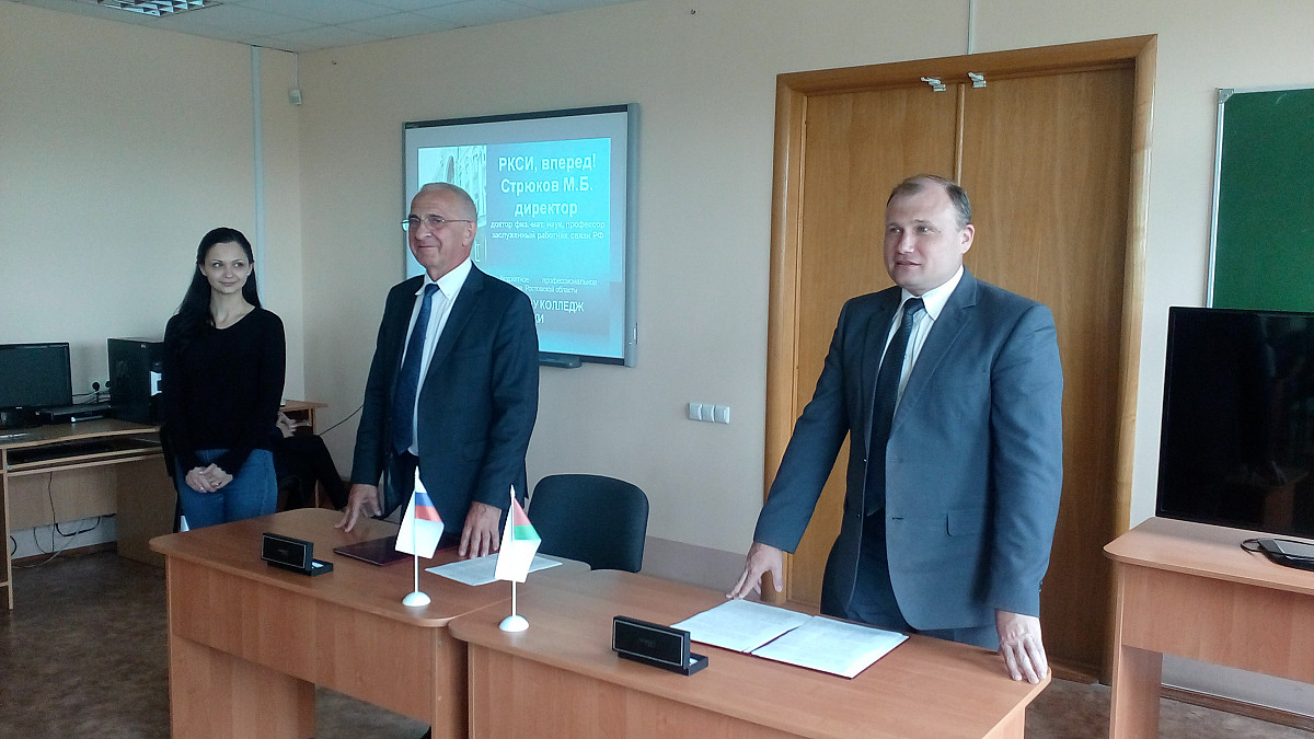 Директор РКСИ Михаил Борисович Стрюков и ректор Белорусской государственной академии связи Андрей Олегович Зеневич скрепили своими подписями соглашение о сотрудничестве в следующих основных направлениях: