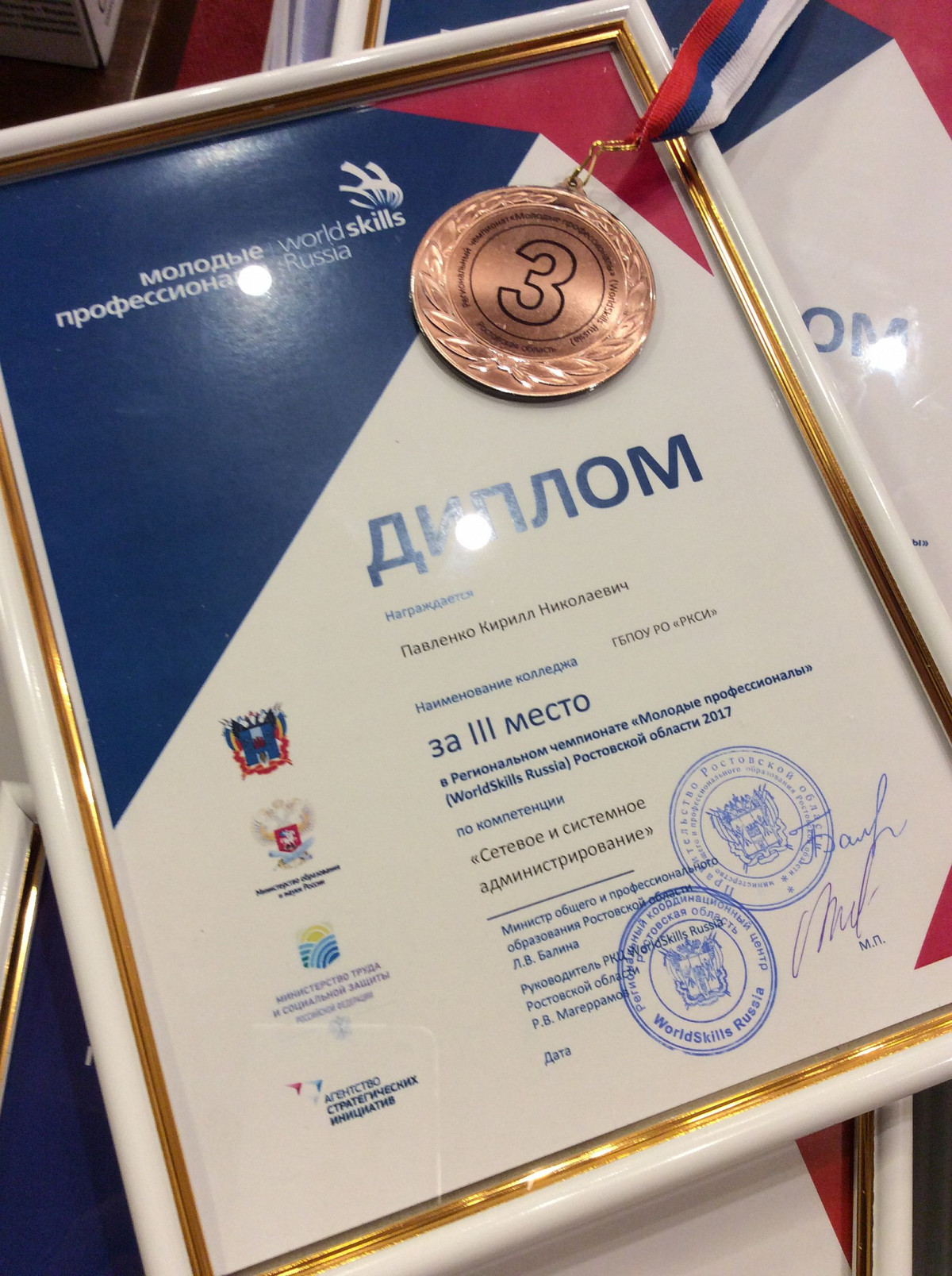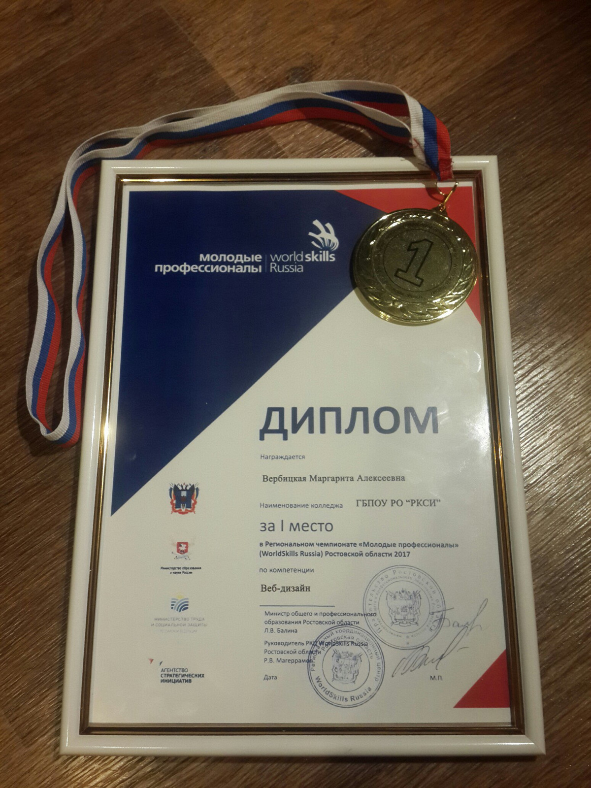 Поздравляем Маргариту Вербицкую с победой в номинации «Веб-дизайн», Кирилла Павленко – с III местом в номинации «Cетевое и системное администрирование» Регионального чемпионата «Молодые профессионалы» (WorldSkills Russia) Ростовской области 2017.