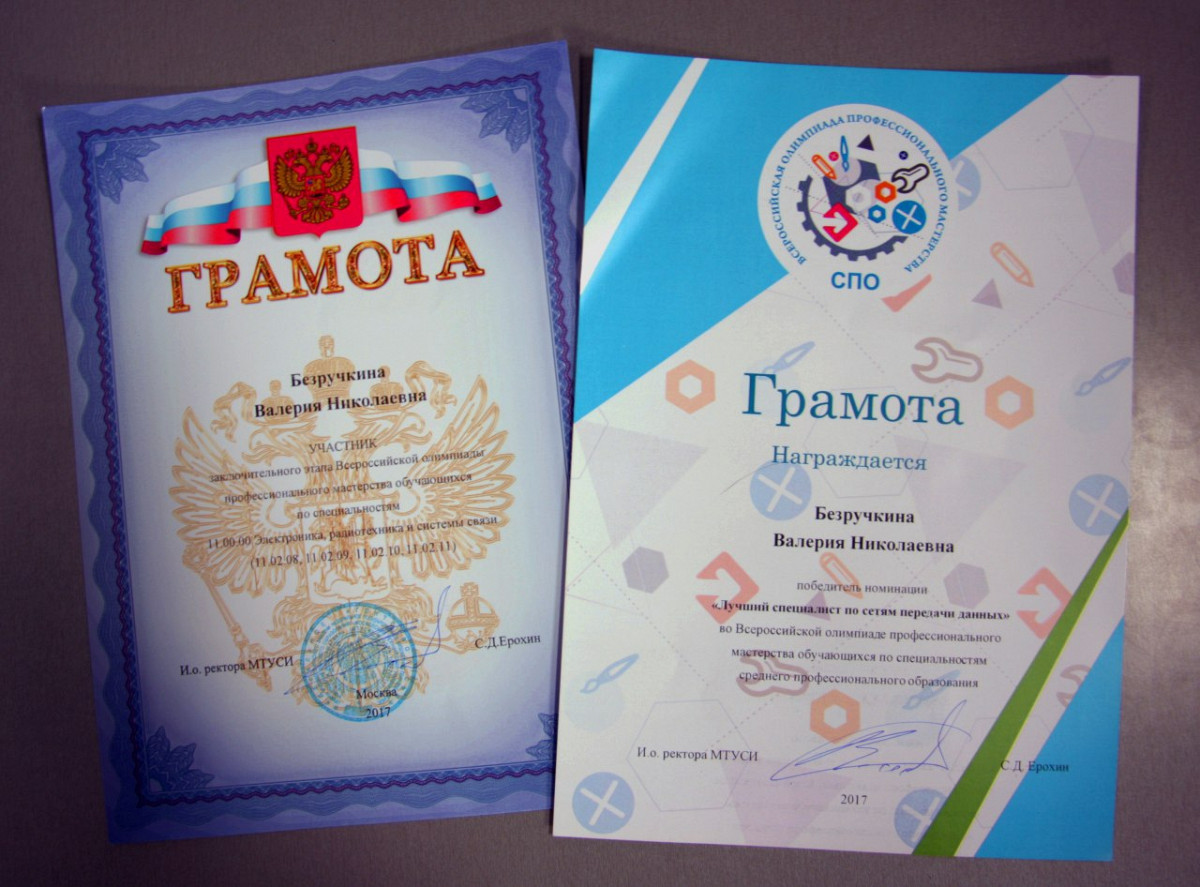 Поздравляем Валерию Безручкину, занявшую II место во Всероссийской олимпиаде профессионального мастерства по профильному направлению «Электроника, радиотехника и системы связи»! Преподаватели – Александр Викторович Данилов, Евгений Юрьевич Комов.