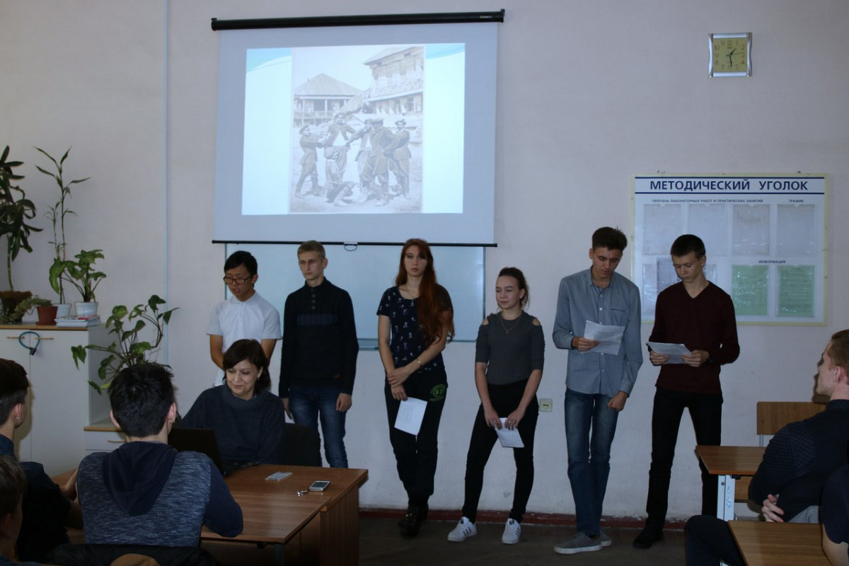 В ходе урока студенты познакомились с историко-географической справкой о создании Ростовской области, подготовленной Дмитрием Минеевым.