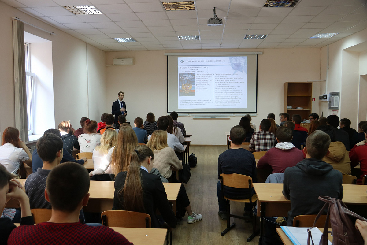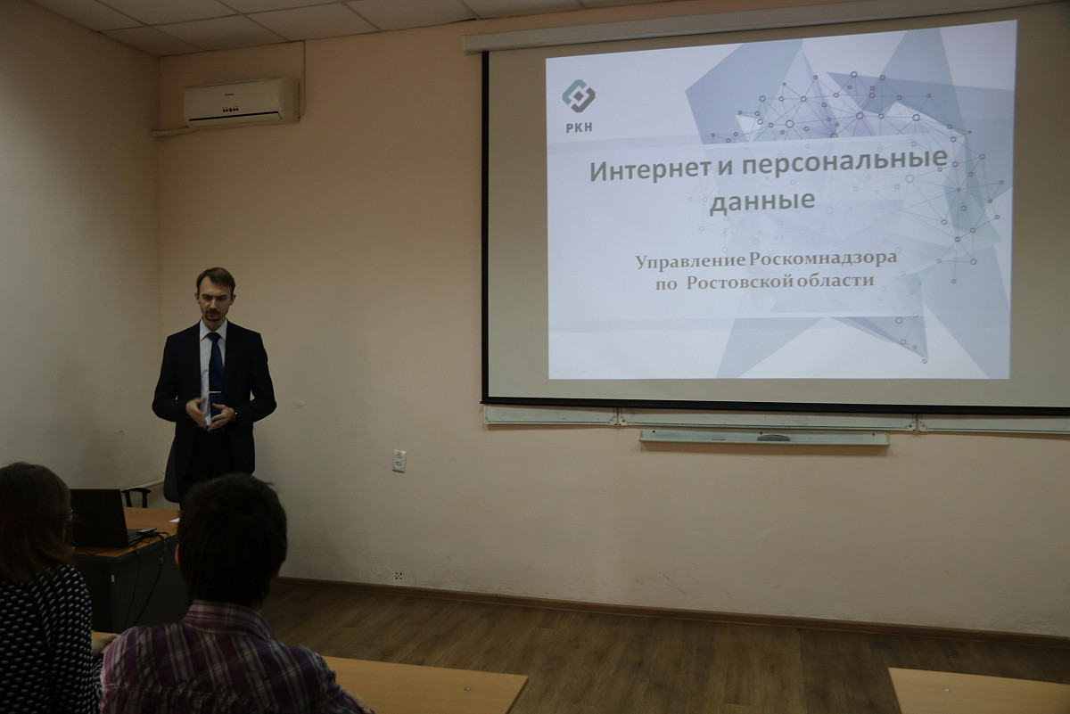 Своими знаниями со студентами колледжа поделился ведущий специалист-эксперт отдела по защите прав субъектов персональных данных и надзора в сфере информационных технологий Управления Роскомнадзора по Ростовской области Красноченко Дмитрий Вячеславович.