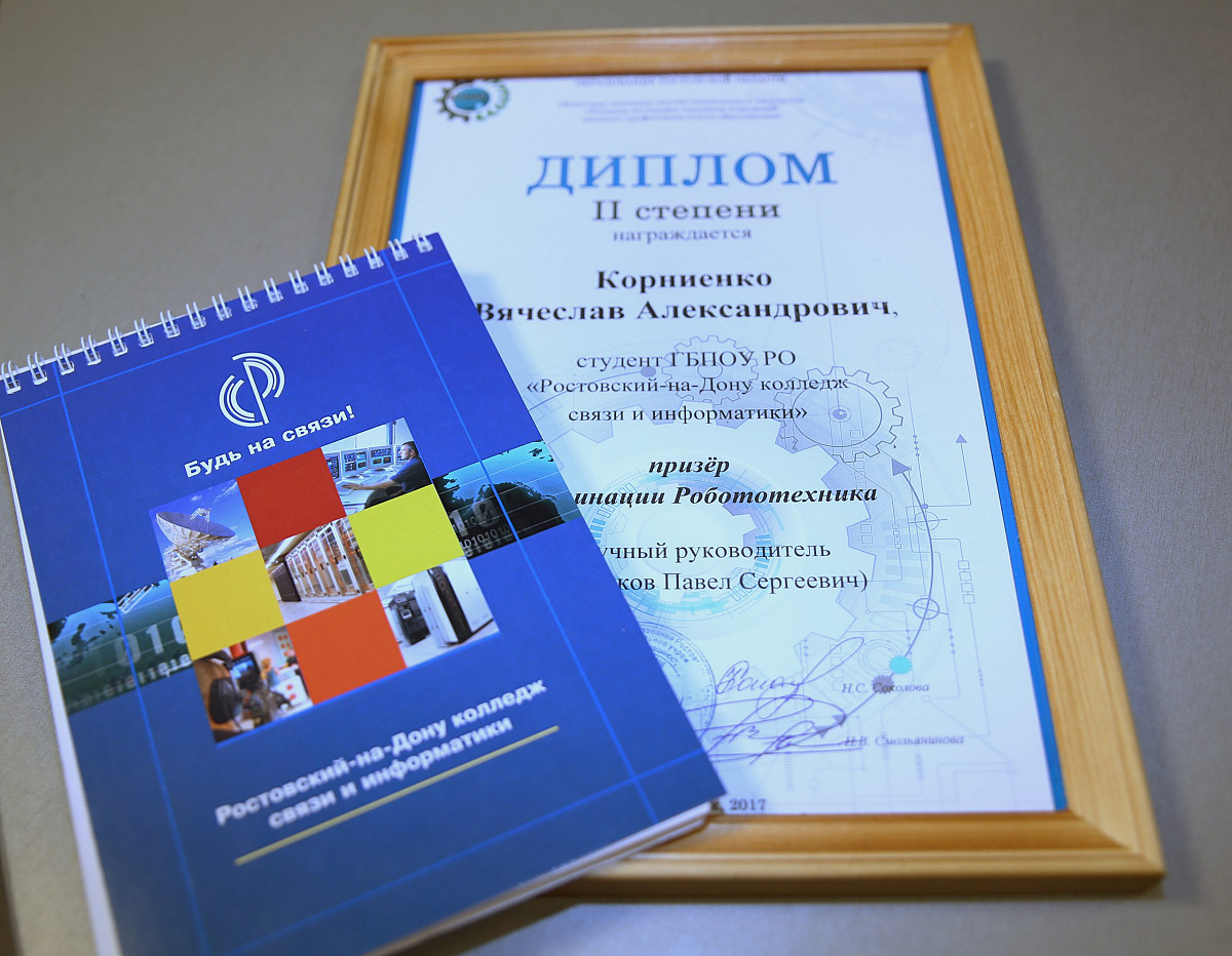 Студент РКСИ Вячеслав Корниенко занял второе место в номинации «Робототехника» областной выставки научно-технического творчества «Техника-молодежи» студентов организаций среднего профессиональных образования с проектом «Робот оператор BT2.0».