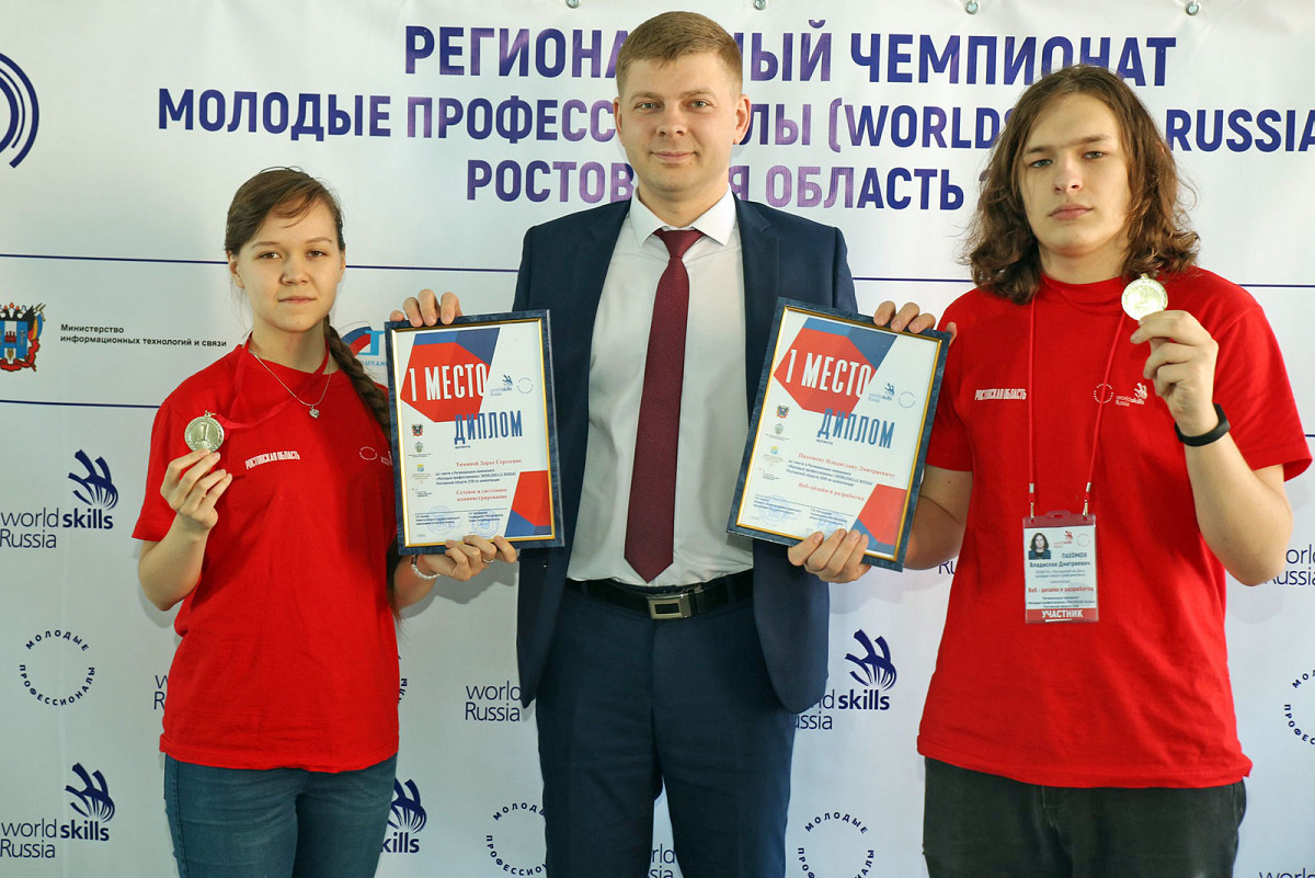 Поздравляем студентов нашего колледжа — победителей Регионального Чемпионата «Молодые профессионалы» (WorldSkills Russia) Ростовской области Владислава Пахомова (компетенция «Веб-дизайн и разработка») и Дарью Тимину (компетенция «Сетевое и системное администрирование»)!