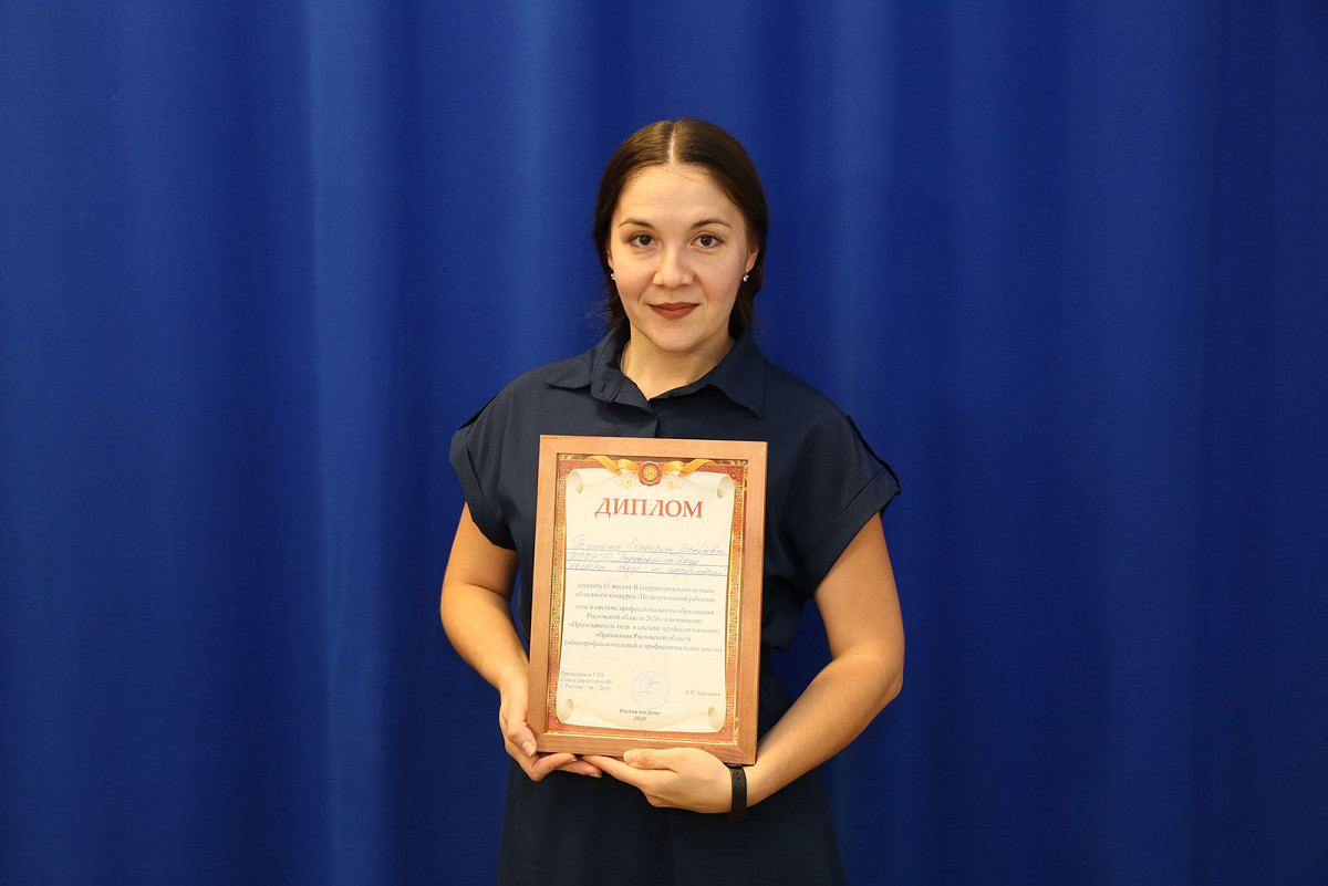 Поздравляем преподавателя колледжа Екатерину Леонидовну Романенко с призовым местом во II (территориальном этапе) областного конкурса «Педагогический работник года в системе профессионального образования Ростовской области 2020» в номинации «Преподаватель года в системе профессионального образования Ростовской области (общепрофессиональный и профессиональный циклы)»!