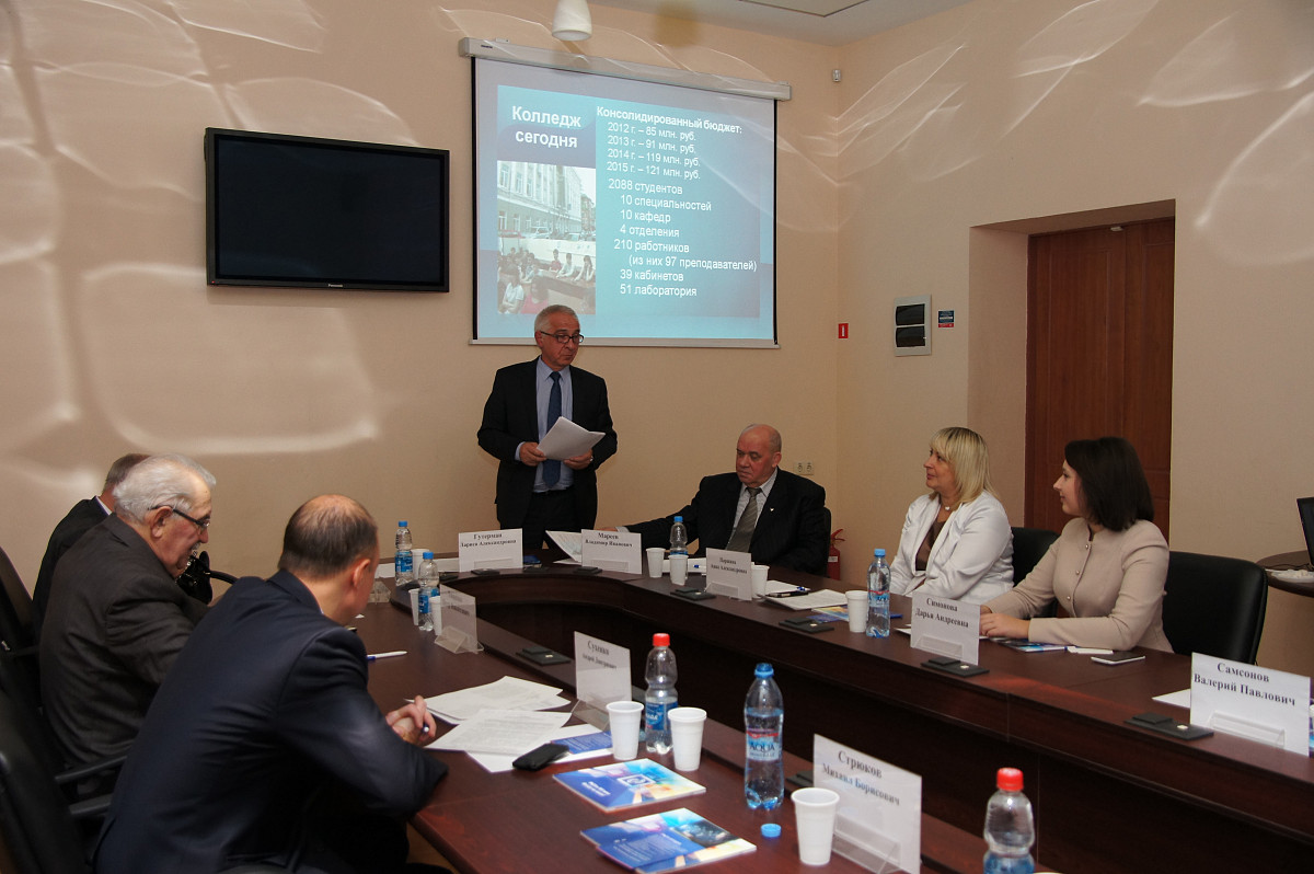 Открыла заседание Анна Александровна Паршина, заместитель министра общего и профессионального образования Ростовской области, докладом «О мерах, принимаемых Правительством Ростовской области по реализации государственной политики сфере подготовки рабочих кадров и специалистов в системе профессионального образования Ростовской области». Далее с докладом выступил директор нашего колледжа. Михаил Борисович Стрюков рассказал об основных результатах работы колледжа в 2014-2015 годах в рамках реализации проекта «Совершенствование комплексных региональных программ развития профессионального образования с учетом опыта их реализации и ГП Ростовской области «Доступная среда» и о планах на 2016 год. В ходе заседания для членов Общественного совета была проведена экскурсия по колледжу.