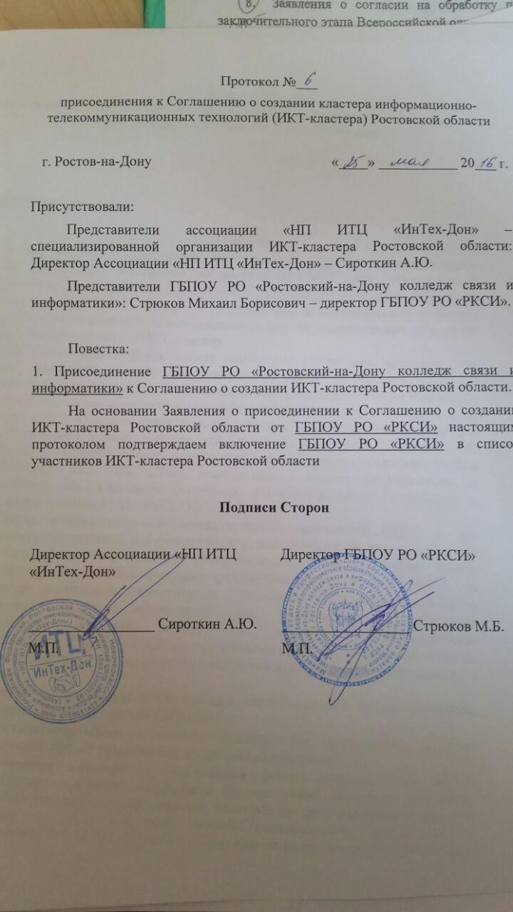 Наш колледж включён в список участников кластера информационно-телекоммуникационных технологий Ростовской области.