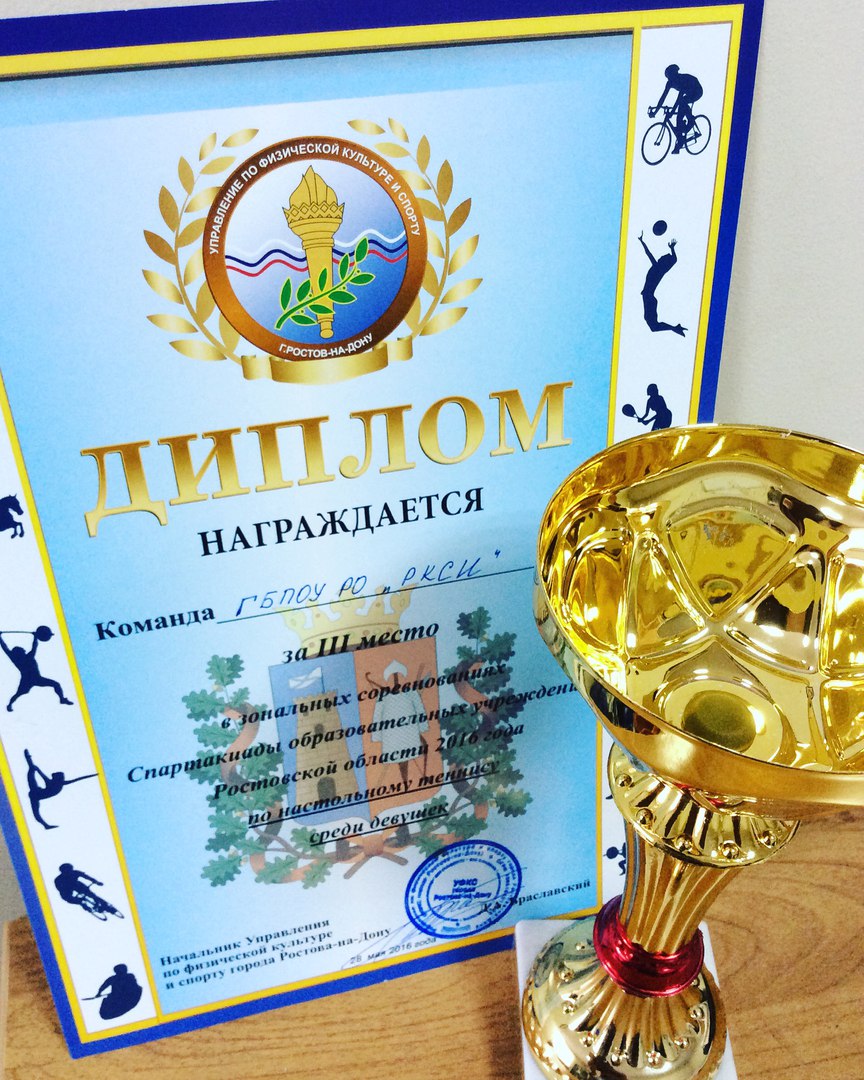 Команда нашего колледжа завоевала III место в зональных соревнованиях настольному теннису среди девушек в рамках Спартакиады образовательных учреждений Ростовской области.