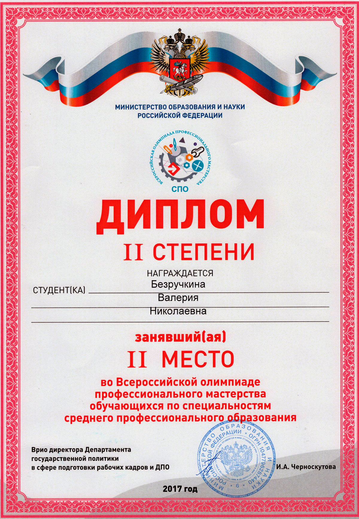 Поздравляем Валерию Безручкину, занявшую II место во Всероссийской олимпиаде профессионального мастерства по профильному направлению «Электроника, радиотехника и системы связи»! Преподаватели – Александр Викторович Данилов, Евгений Юрьевич Комов.