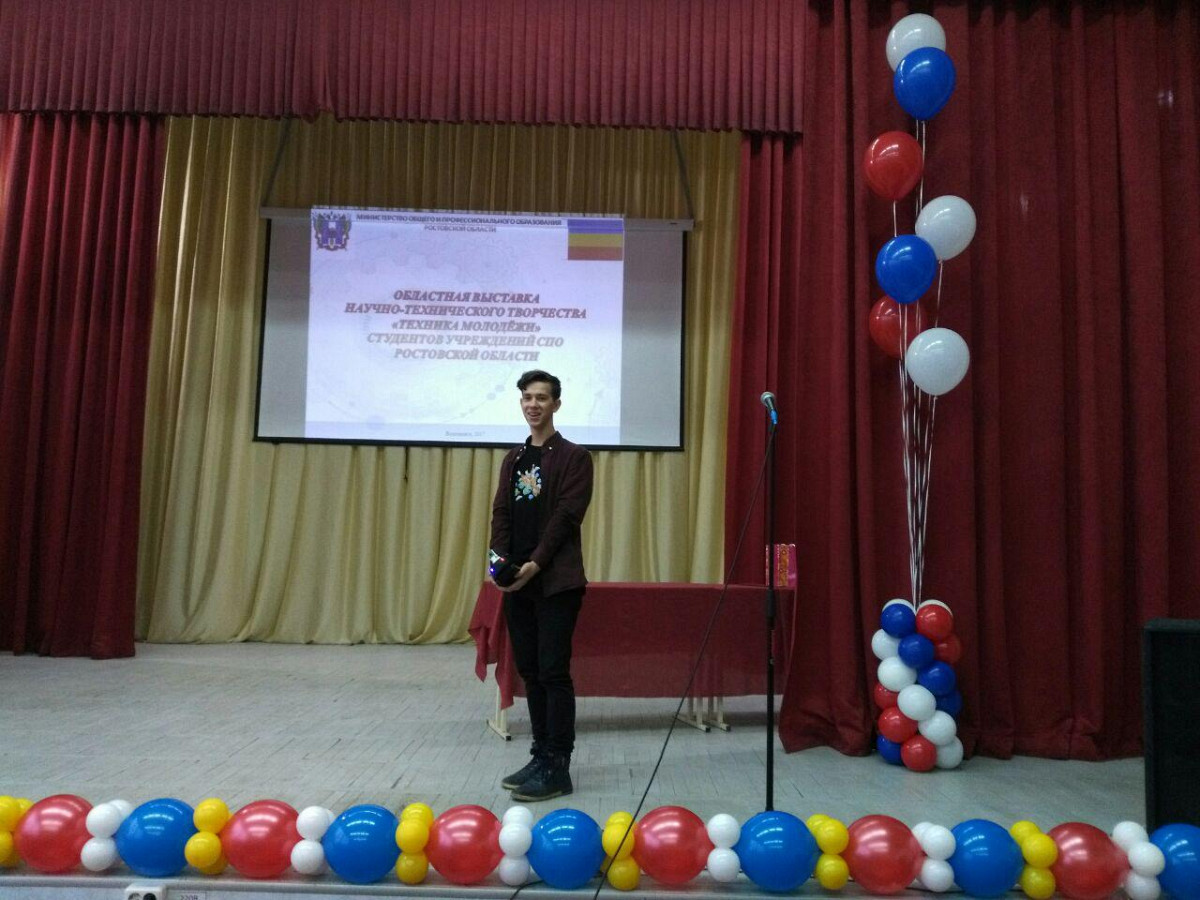 Студент РКСИ Вячеслав Корниенко занял второе место в номинации «Робототехника» областной выставки научно-технического творчества «Техника-молодежи» студентов организаций среднего профессиональных образования с проектом «Робот оператор BT2.0».