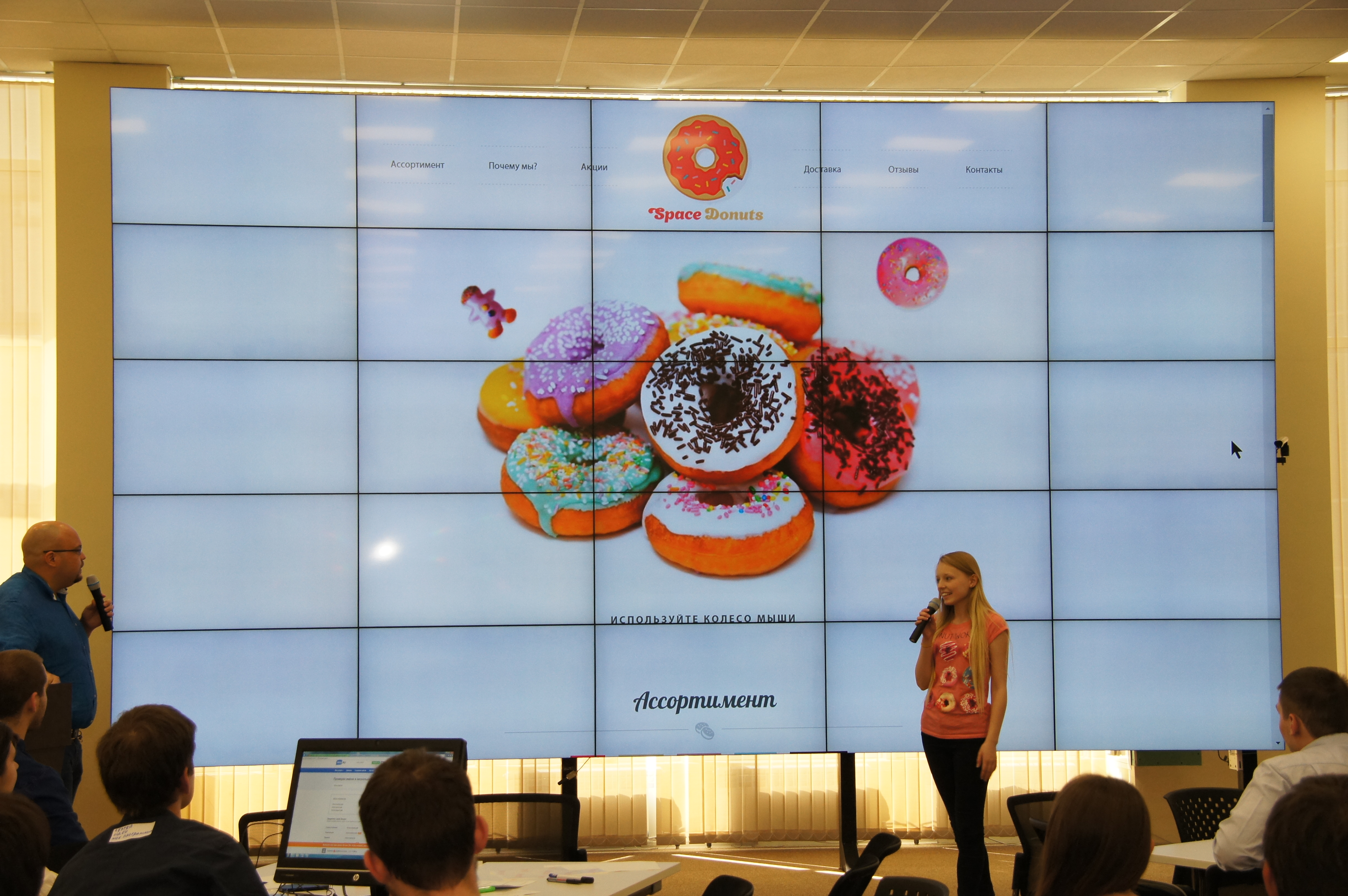 Поздравляем студентов группы ПИ-21: Маргариту Руденко, Тиграна Тумасова, Константина Сомкин, Дениса Русаков, Алексея Иванова, Джавдата Газизова, Артема Гусарова. Сайт, разработанный ими за ночь, был настолько аппетитен, что пончиков захотелось всем.