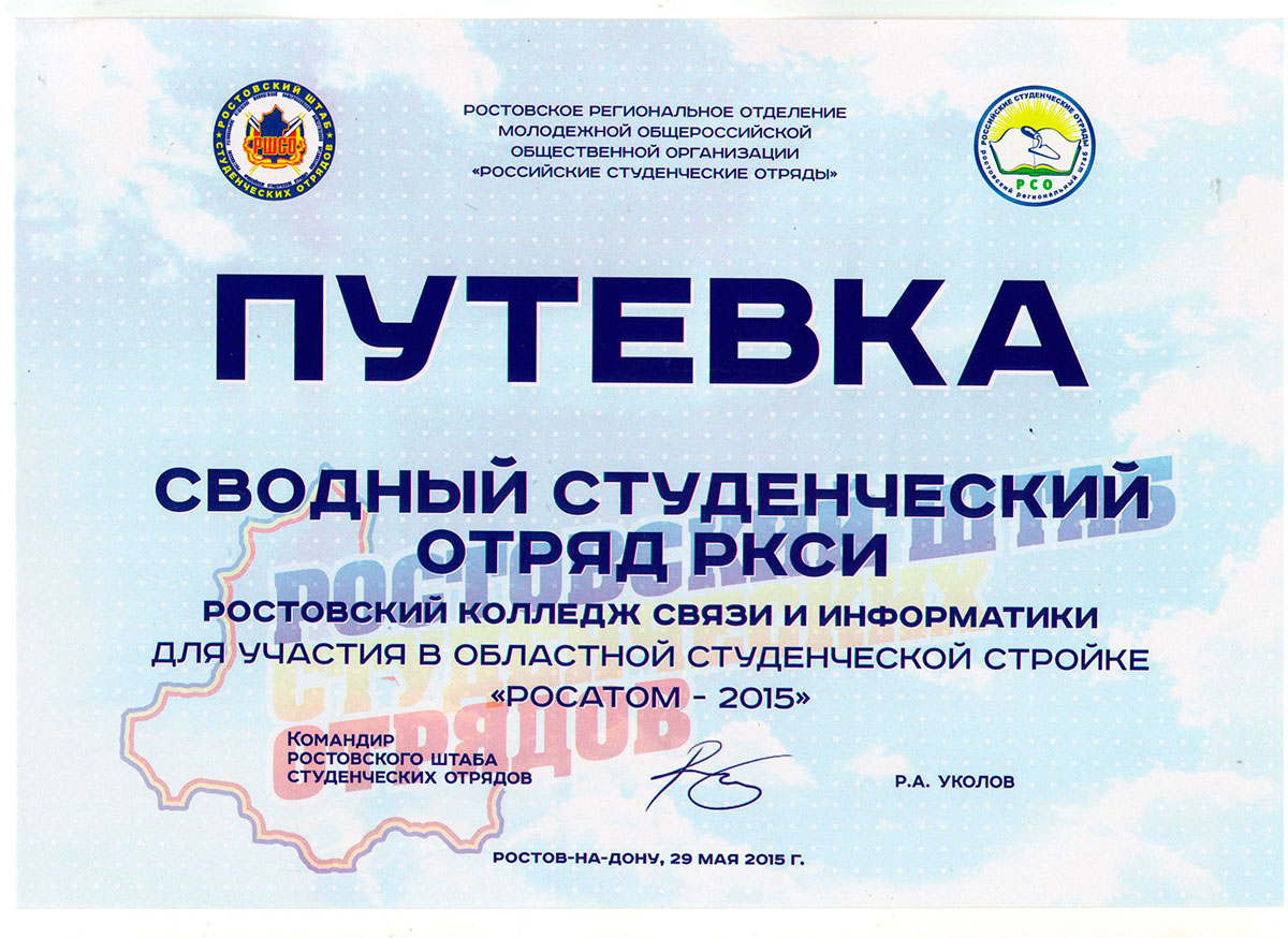 Сводный студенческий отряд РКСИ получил путёвку для участия в областной студенческой стройке «Росатом-2015».